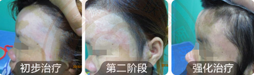 待患者病情进入稳定期后再采用皮肤分离手术,从患者自身细胞中分离出活性黑色素细胞,进行密集培植,在配合308修补激活黑色素细胞。
