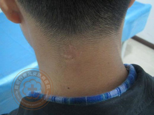 ▲病 史:2年前后颈部发现白斑,当时没在意,后白斑逐渐变大,曾使用外用药、口服药治疗,效果不佳,来我院就诊。