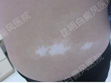 ▲病史:患者腹部白斑3年,进行性加重,曾在皮研所治疗,口服药:(药物不详);外用药:(药物不详)、效果不佳,今来我院就诊。