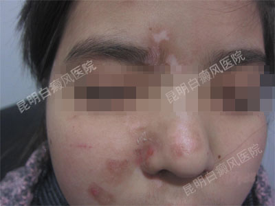 由于患者患病较长,且又处于面部,对患者平时的生活有很大影响。所以,我院检查后,根据病情,使用了中西医结合治疗对患者进行治疗,主要通过治疗,刺激细胞活力,促进细胞再生,尽快让患者走向康复。患者要注意养成良好的生活习惯,确保康复效果。医院地址:昆明市护国路2号(弥勒寺公交站旁),健康热线:0871-68412222。>>>一键电话咨询医生、方便快捷