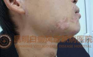 就在一个月前,小杨洗脸时发现下巴周围长有白斑。目前是单身的他担心白斑会影响外在形象,就赶紧去当地医院皮肤科治疗,确诊为白癜风,使用0.03%他克莫司软膏擦拭白斑,并注射了斯奇康注射液,未见好转,白斑反而扩散至颈部。
