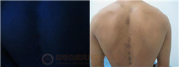 经过两个疗程系统全面的治疗患者背部白斑处皮损消失,白斑恢复正常肤色。