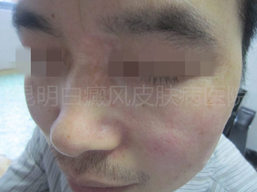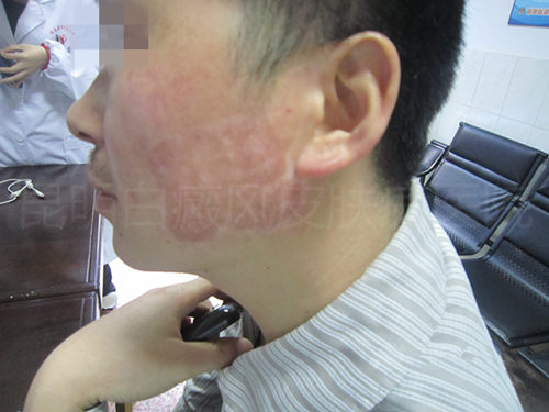 ▲病 史:患者于11年前无明显诱因下发现右面部多处色素脱失斑,曾到多家医院就医,口服过白癜风胶囊,自制中药,外擦自制外擦药水,白斑无明显变化,遂来我院就医。>>>什么原因造成了您的白癜风的久治不愈?在线咨询资深医师