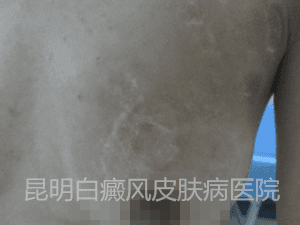 1、光疗:针对胸部白斑部位特点,采用308准分子光治疗进行治疗,3个疗程;