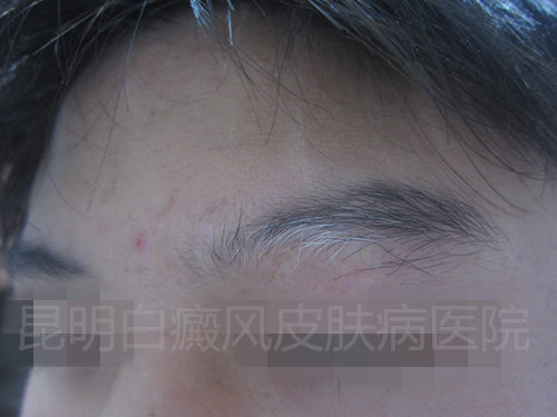 【2个疗程后,患者额头白斑基本消失,有少许白眉毛】