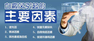 有上可见,白癜风的发病因素是多方面的,但是有相当一部分病人查不出任何诱发因素。我们研究发现,白癜风病人不论发病在什么部位,都与微循环障碍有关系。我们在研究治疗药物时,着力在改善微循环上下工夫。根据临床观察,本病病因主要有以下几方面: