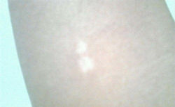 白癜风光靠肉眼诊断,容易造成误诊、误治,有效的方法是去医院做一个德国奥曼Wood灯检测。白癜风在德国奥曼Wood灯检测下,白癜风的皮损为纯白色,与周围正常皮肤对比鲜明,界限清楚,并可与其他白斑疾病相鉴别。