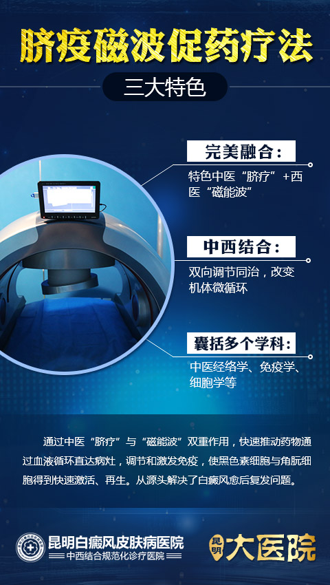 同时运用电磁波对人体内部系统的平衡机制和中药对机体的整体调节平衡作用,进一步改善、营养黑色素细胞生长存活的微环境,对杜绝或减少复发起到积极的协同治疗作用。