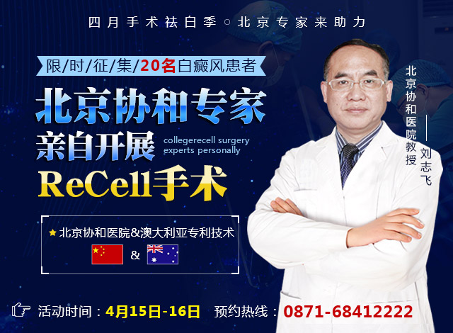 为了帮助广大患者能在夏季前控制白癜风发展,昆明白癜风皮肤病医院4月15日-16日,特邀北京协和医院刘志飞教授带领的博导团,来院亲自为白癜风患者实施澳大利亚专利技术“ReCell大面积再生术”,此次面向全省,征集20名适合开展ReCell手术的患者,由北京协和刘志飞教授亲自操刀,名额有限,需提前预约。