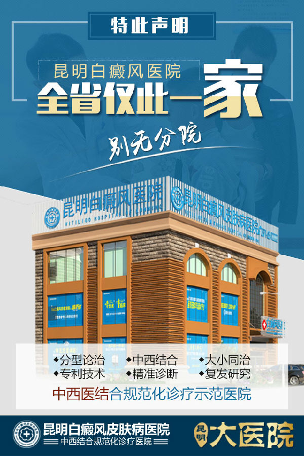 郑重声明:昆明白癜风医院,全省就一家,别无分院!我院在任何车站都没有安排接待人员,患者请直接来院就诊,不要轻信陌生人的说法,以免上当受骗。就诊过程中有不明白的地方,都可咨询我院医护士。如有任何疑问请及时拨打我院咨询电话:0871-68412222。