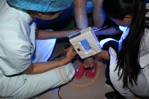 针对此类情况多发,引起了医院专家们的重视,经过昆明白癜风皮肤病医院全体医护人员开会探讨、研究决定开展一次“9月隐性白斑专项检测月”。专项检查以“隐性白斑检测、病情护理指导、中西结合祛白、机体环境调节”为一体,通过全面检测,为广大患者找出秋季白斑消退的原因,并向患者科普隐性白斑应对方案。