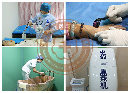 2014年:昆明白癜风皮肤病医院斥资,引进大量中医设备及医师人员,药离子、熏蒸、药浴、针灸等,结合科学独特的中药组方,正式投入临床治疗,并命名为“中医色素再生疗法”。