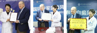 2017中西医白癜风治疗技术战略合作签署仪式在云南昆明白癜风皮肤病医院举办,仪式现场中美双方代表签订战略合作协议书,伯纳德·葛菲(Dr. Bernard S. Goffe)教授被特聘为远程国际技术顾问,并颁发了聘书。